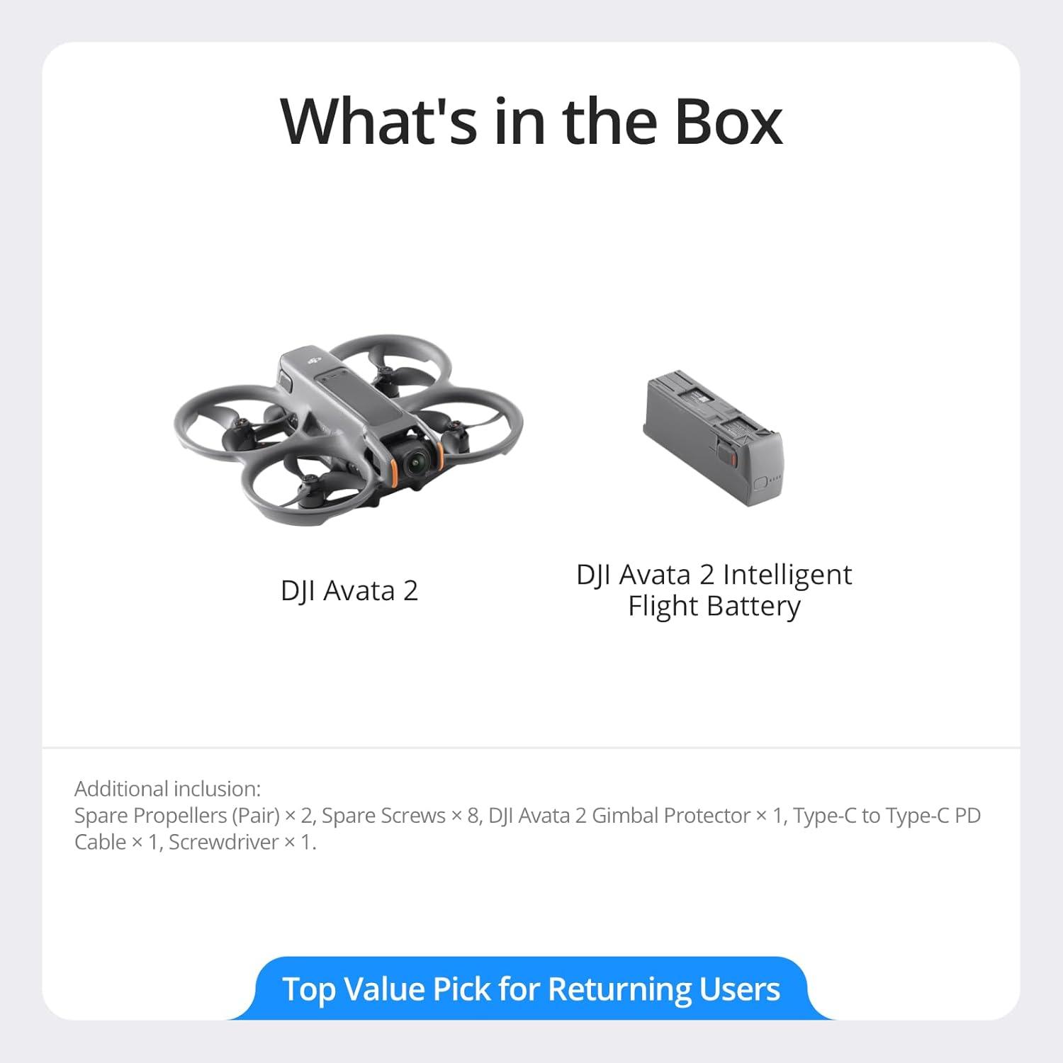 DJI Avata 2 Fly More Combo (3 Batteries), FPV Drones with Camera for Adults 4K, Immersive Experience, One-Push Acrobatics, Built-in Propeller Guard, 155° FOV, Drone Compliant with FAA Remote ID(Drone Only)