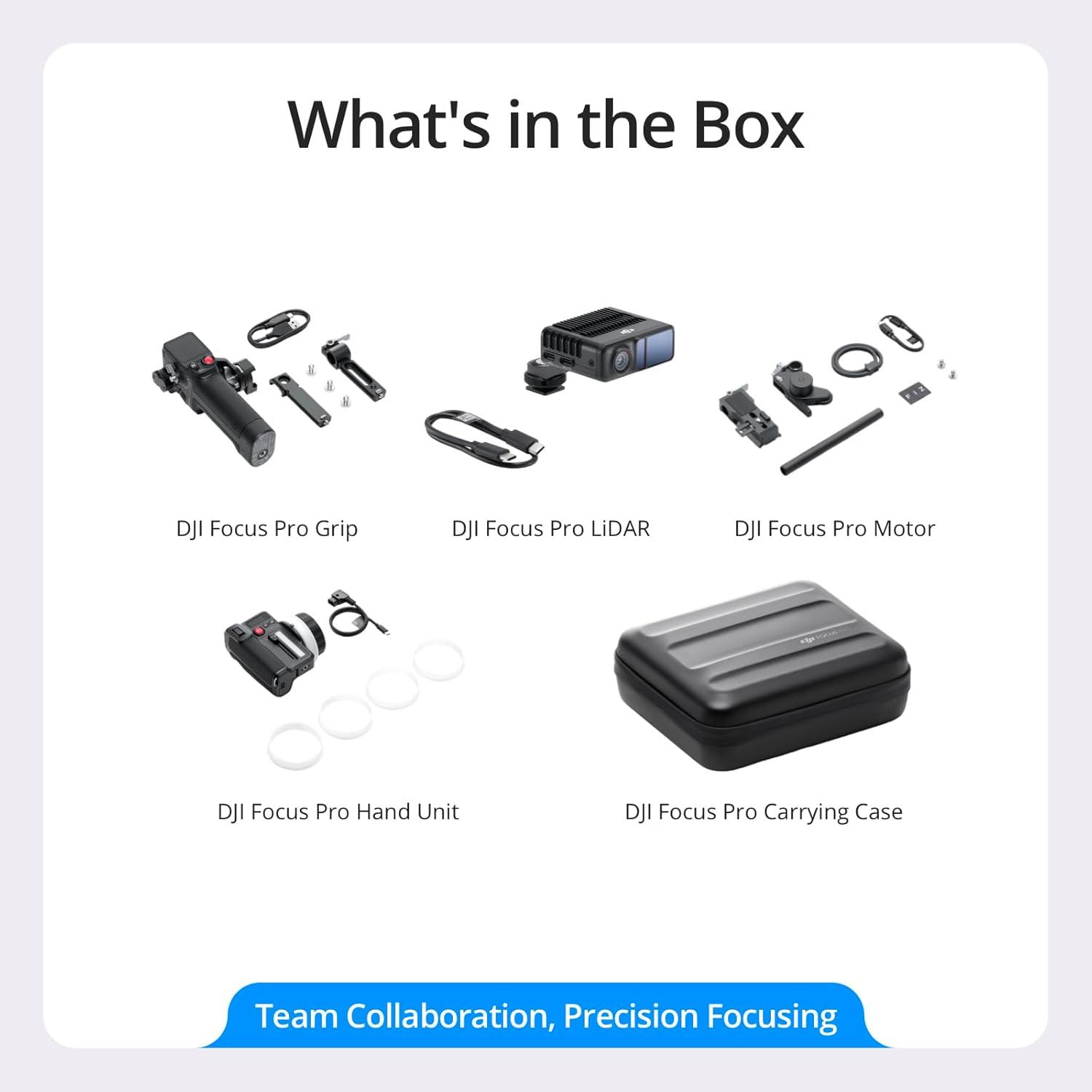 DJI Focus Pro All-In-One Combo – Includes the LiDAR, Grip, Motor, Hand Unit, and Carrying Case. Ideal for multi-person collaborations with remote FIZ control requirements.