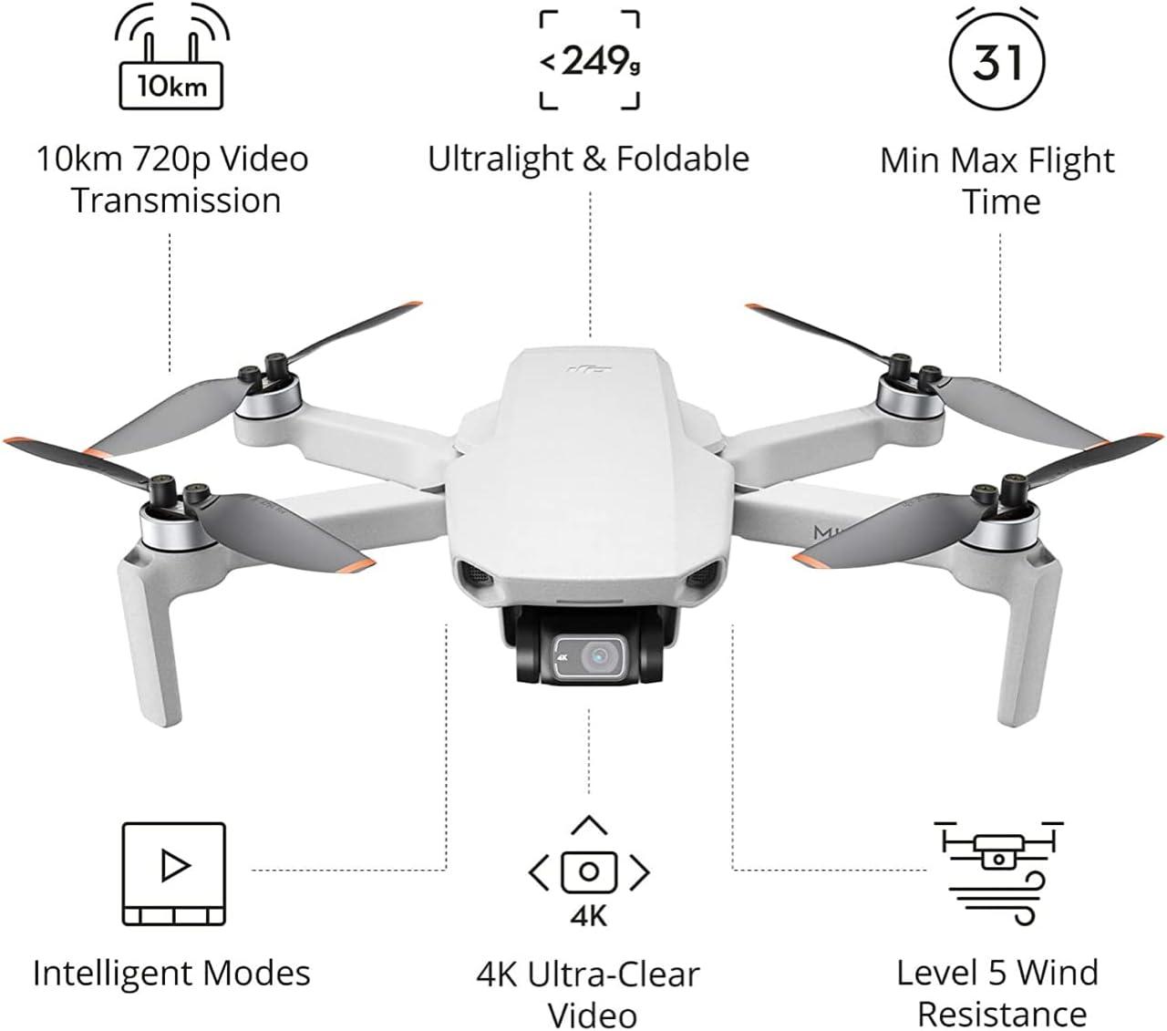 DJI Mini 4K Camera Drone Combo, Drone with 4K UHD Camera for Adults, Under 249 g, 3-Axis Gimbal Stabilization, 10km Video Transmission, Auto Return, 2 Batteries for 62-Min Max Flight Time, QuickShots(DJI Mini 2 Fly More Combo)