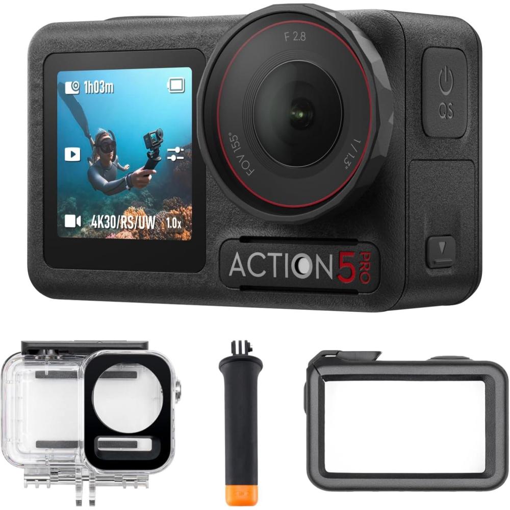 DJI Osmo Action 5 Pro Diving Combo, Action Camera 4K for Divers with 60m Waterproof Case, Dual OLED Touchscreens, Water Pressure Gauge, Color Temperature Sensor for Accurate Underwater Color