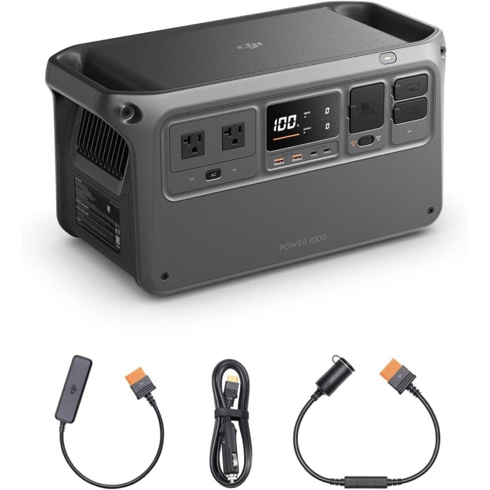 DJI Power 1000 Portable Power Station, 1024Wh Power Generator with Mavic 3 Series Fast Charge Cable, LiFePO4 Cell, Fast Charging, 2200W Max Output, Content Creation, Drone Photography, Camping & RVs(Power 1000 With Car Power Cables)