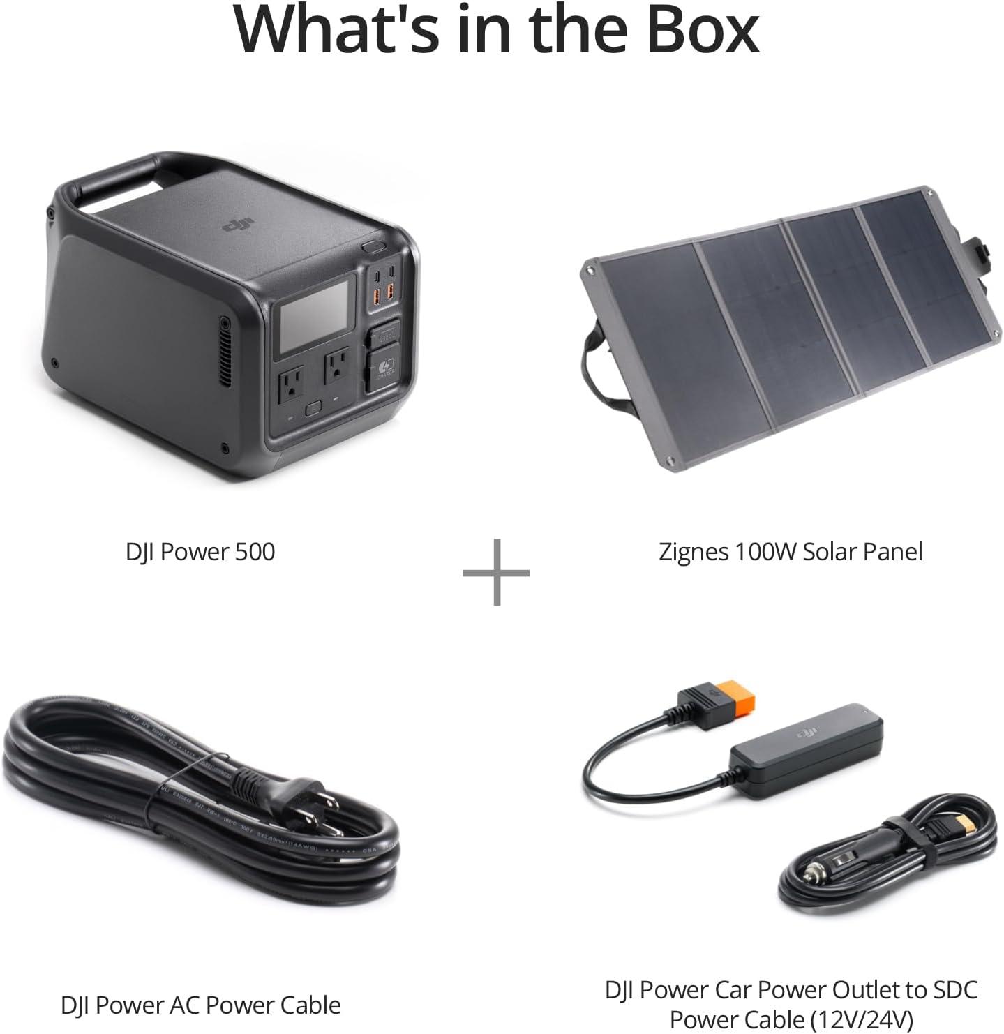 Notes: DJI Power 500 (including AC Power Cable) and the kit accessories (such as solar panel, SDC cable, etc.) are shipped in two separate packages. We apologize for any inconvenience this may cause.