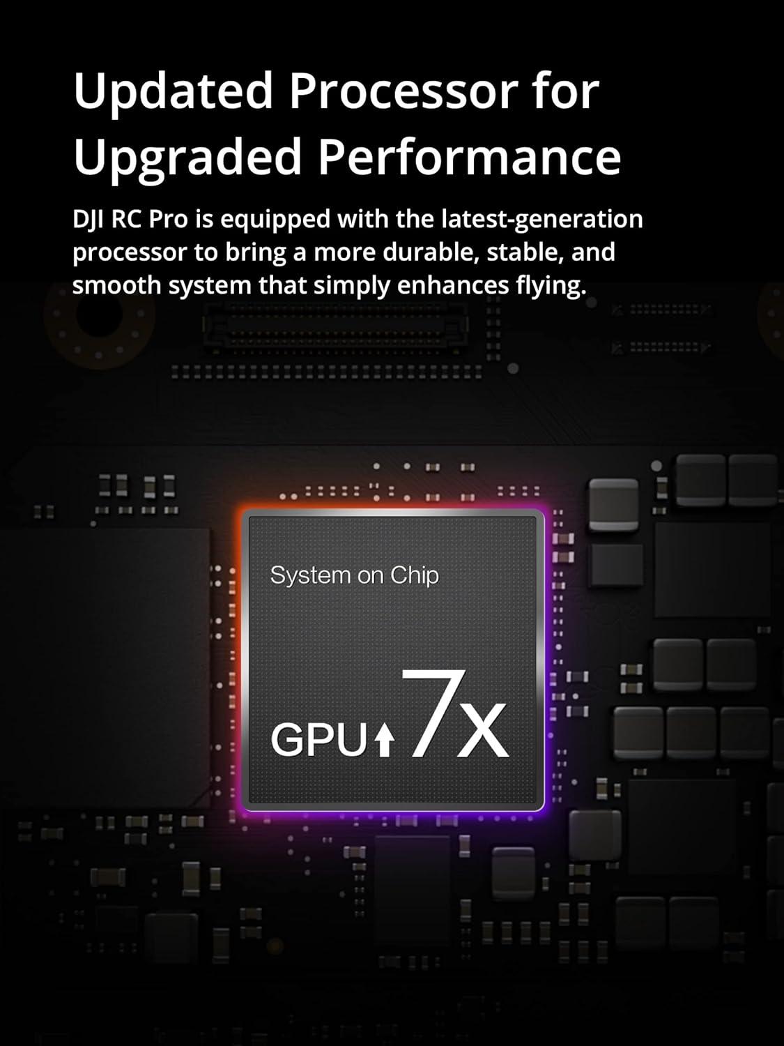 Offering powerful performance, DJI RC Pro is designed for professional-level aerial photography. Thanks to the next-generation processor and increased storage capacity, DJI RC Pro works more stably and smoothly. It comes with the powerful O3+ video transmission technology and supports the DJI Cellular Dongle to enable 4G communication. It also adopts the same control sticks as DJI FPV, offering a precise, ultra-smooth control experience.