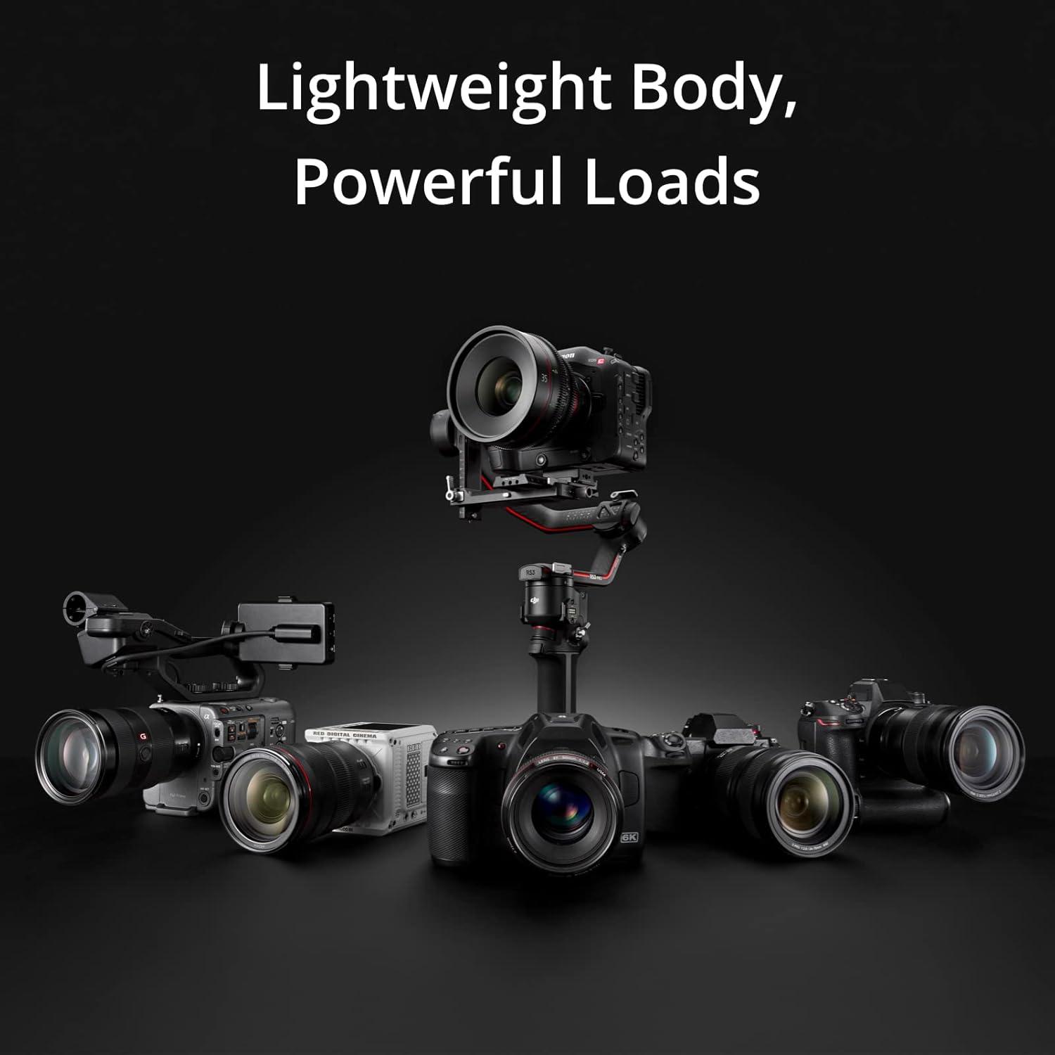 Wide-Ranging Compatibility – With strong, high-torque motors, the RS 3 Mini camera stabilizer possesses a load capacity of up to 2 kg (4.4 lbs), enabling a wide range of camera and lens combinations.