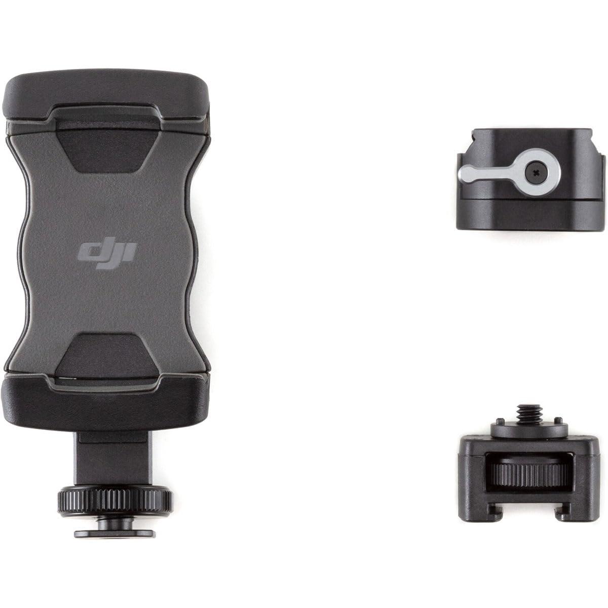The DJI RS Phone Holder secures the smartphone for monitoring, ActiveTrack 3.0, or Force Mobile.