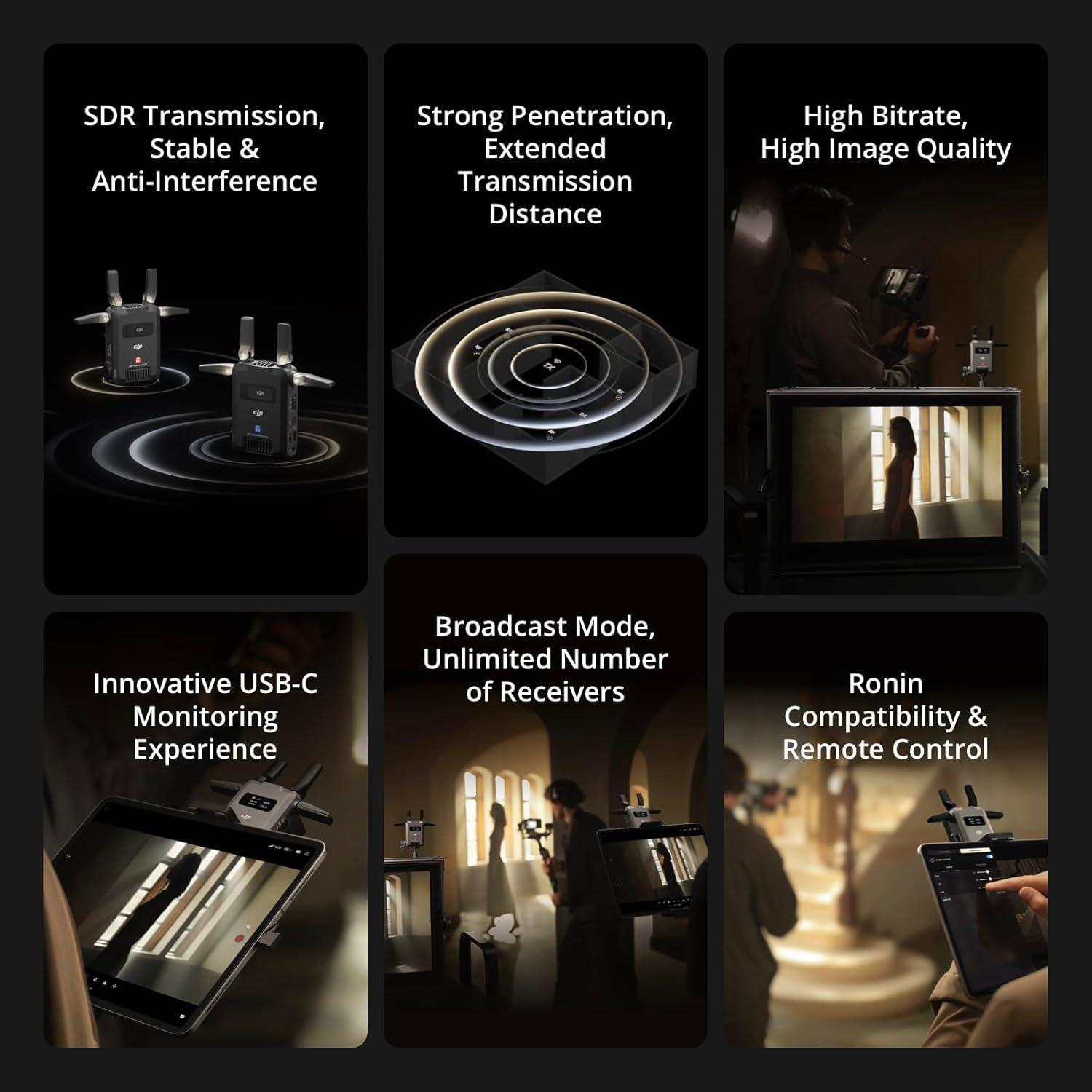 -The DJI SDR Transmission Transmitter allows for direct connection to smartphones or tablets over Wi-Fi, offering a cost-effective, dual-channel monitoring experience without needing a receiver.