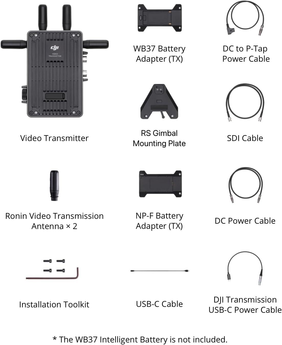 When the DJI Video Transmitter or the DJI Video Receiver are purchased separately, it does not include a WB37 Intelligent Battery. If you have not yet purchased a WB37 Intelligent Battery, it is recommended to purchase it along with other items.